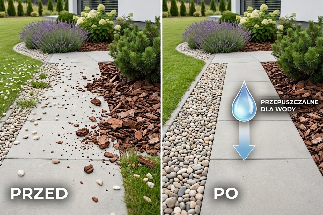 Naturalny wygląd i drenaż: Spoiwo nie tworzy sztucznej, błyszczącej skorupy. Materiał po związaniu wygląda naturalnie i – co najważniejsze – swobodnie przepuszcza wodę do gruntu.